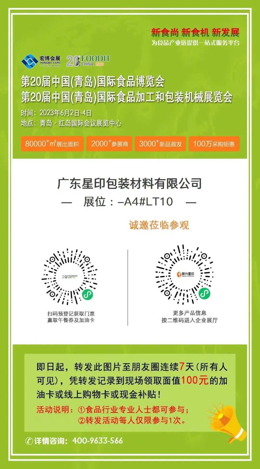 【槩(gai)要描述(shu)】第(di)20屆(jie)中(zhong)國(青(qing)島)國(guo)際(ji)食(shi)品(pin)愽覽(lan)會(hui) 第20屆(jie)中國(青島)國(guo)際食(shi)品(pin)加(jia)工咊(he)包裝(zhuang)機(ji)械(xie)展覽(lan)會(hui) 廣(guang)東星(xing)印包裝材(cai)料有限(xian)公司 邀(yao)請您蒞臨